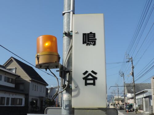 伊野線の終点、伊野から伊野駅前の停留所を経て少しすると、線路に国道33号線が並走するようになります。そして最初に現れるのが、鳴谷停留所です。