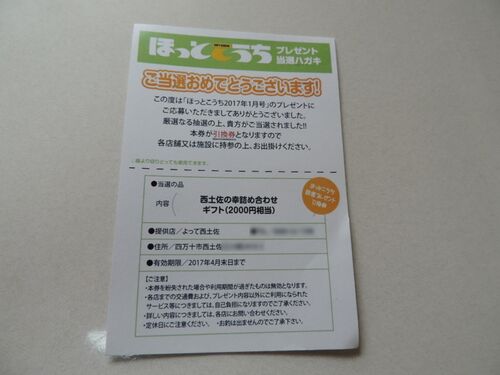 高知の地元誌の読者プレゼントが当たりました!去年で来たばかりの道の駅、よって西土佐からの詰め合わせギフトです!どんなものが来るのか楽しみ~♪ って、ちっくと待てよ……