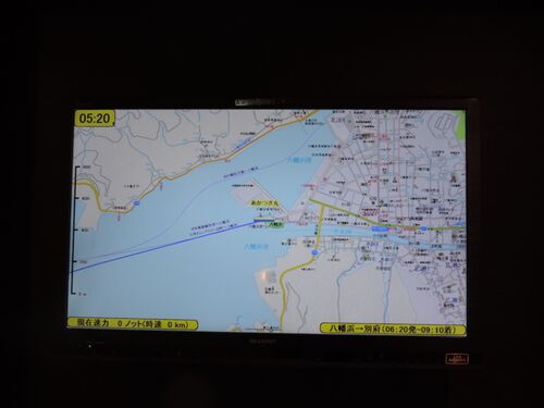 別府発八幡浜行の八幡浜到着予定時間は午前2時35分。それから5時半までは船内で休憩ができます。流石に到着時間はまだ寝ていましたが、5時前には目が覚めました。どうやら、寝過ごして再び別府行きは避けられました。