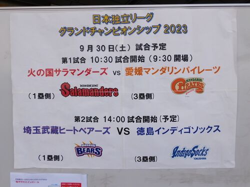 日本独立リーググランドチャンピオンシップ2日目は準決勝2試合。第1試合はヤマエグループ九州アジアリーグの覇者火の国サラマンダーズと準々決勝を勝ち上がった愛媛マンダリンパイレーツとの対戦です。