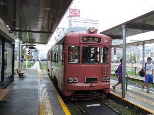 高知で岐阜と言えば元名鉄岐阜市内線モ590形が譲渡されて来たとさでん590形。来高以来(この写真撮影後も)各部が改造されましたが、スカーレット1色の塗装は今も変わりません。今回岐阜ってことでこれで……ダメですよね(苦)