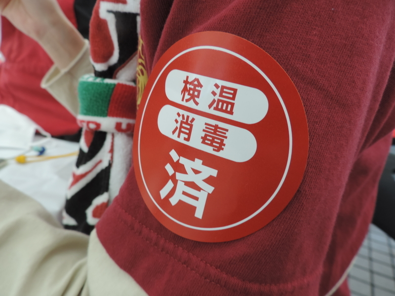検温と消毒を済ませて会場へ。感染拡大予防のため、滞在時間の制限もあります。シールの色で入場時間帯が分かるようになっています。