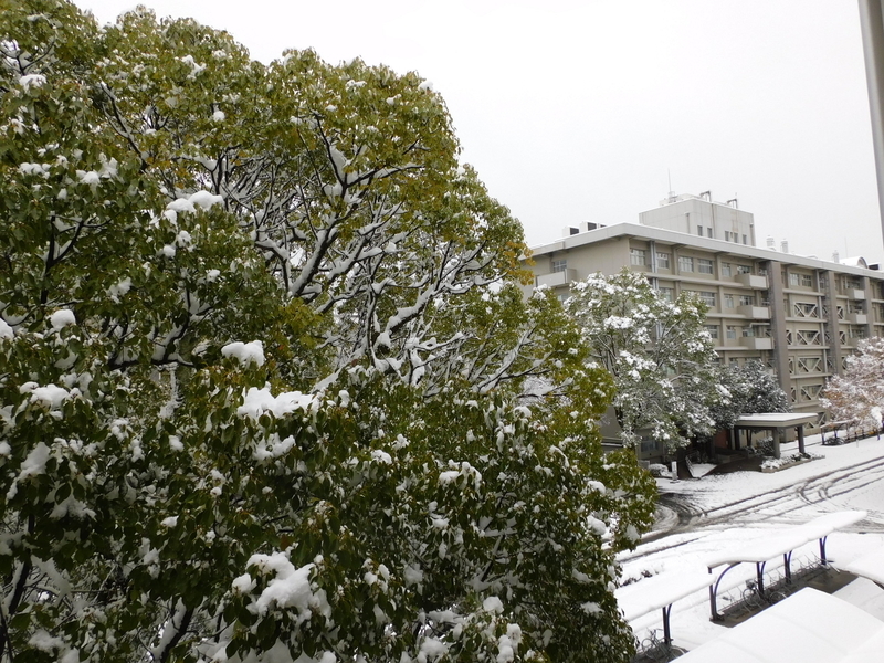 在学中に一度あるかないかの積雪、テンションも上がろうというものです。研究室にいても、学生の歓声が聞こえてきました。