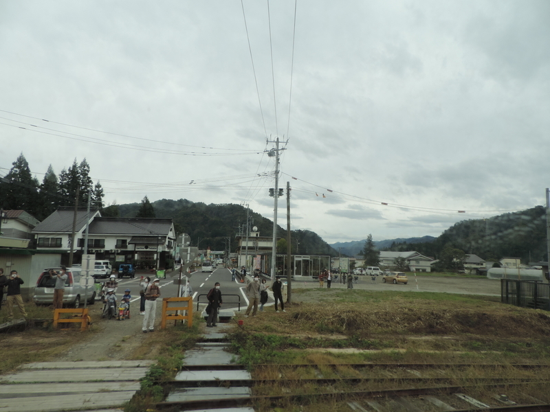ダムを過ぎた只見線が、久々に大き目の集落に差し掛かってきました。