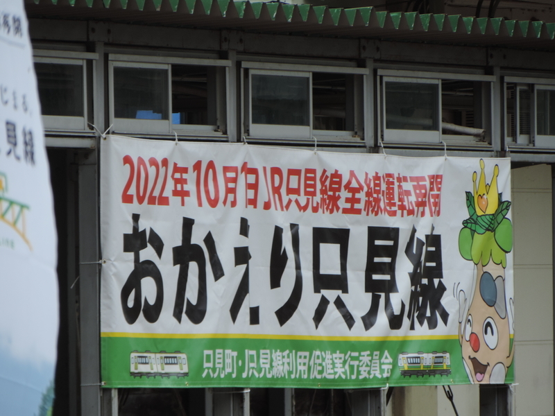 ホームの先には、11年待ち続けた全線運転再開を祝う横断幕が掲げられています。