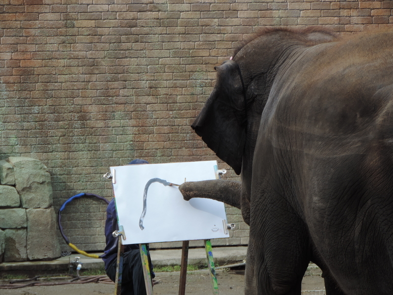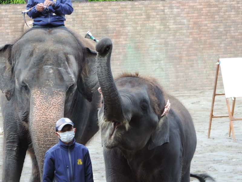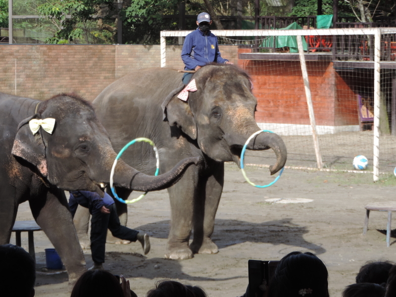お昼を美味しく頂いたところで、ここからはぞうさんたちによるパフォーマンスの時間です。