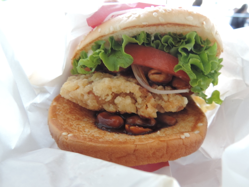 これが味噌ピーチキンバーガーです。市原ぞうの国限定です。限定物に弱いんですよね。増して千葉と言えば落花生ですし。