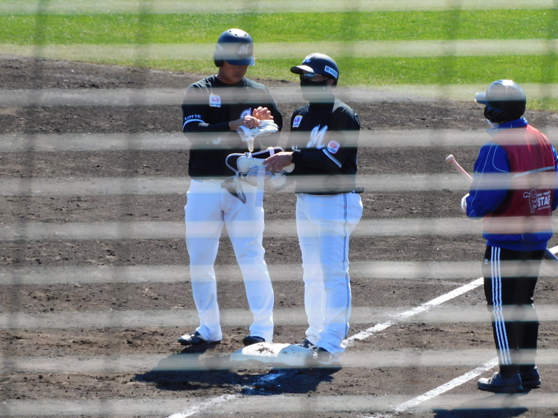 その裏、マリーンズは3番手にカスティーヨを送ります。ところが登板前に一塁塁審から何か一言。しぐさから察するに、スピットボールについて注意があったのではないかと思われます。