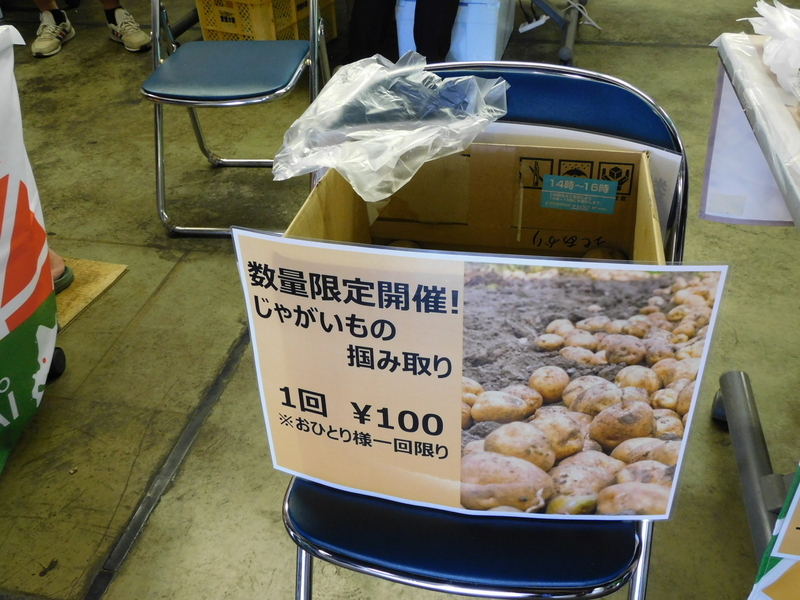 美唄市の物販スペースでジャガイモの掴み取りをやっています。カミさんが挑戦したところ9個取れました。100円でジャガイモ9個、大サービスもいいところです。
