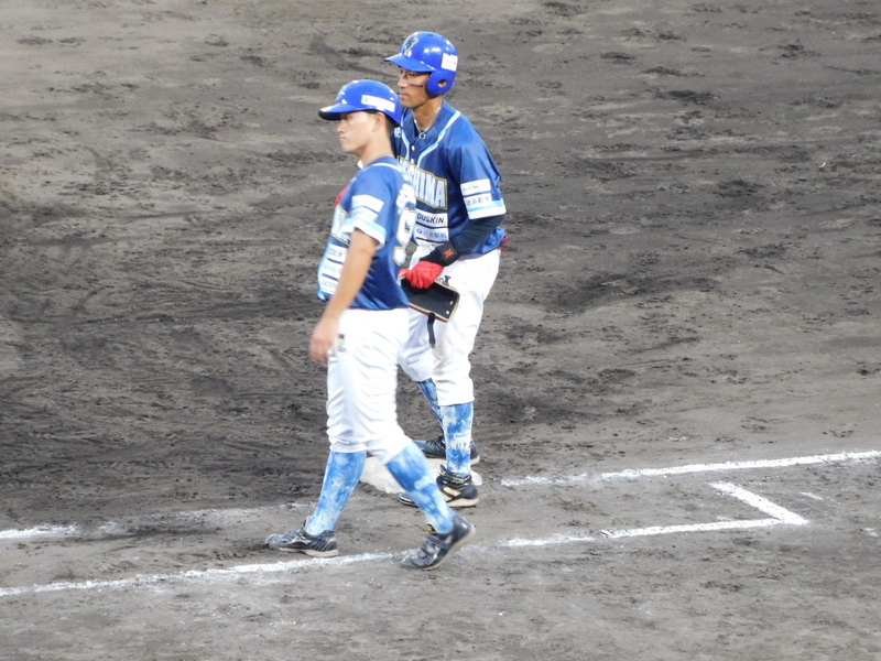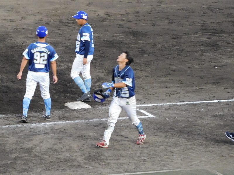 さらに続くバッターは元千葉ロッテの清田。その清田はここでレフトに外野フライを放ち、3塁走者が何とか滑り込んで2点目をもぎ取ります。