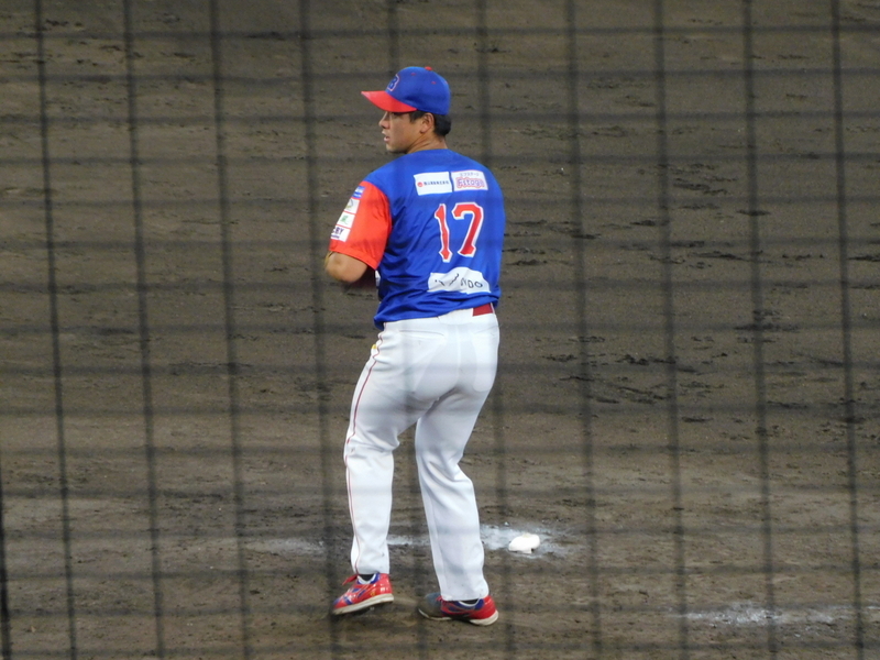 試合再開。6回表、徳島は3番手にマルティネスを送ります。この回マルティネスは3安打を許したものの、3番金子のヒットに対しライト増田がダイレクトの返球で2走の本塁突入を阻止する好守もあり、失点は免れます。