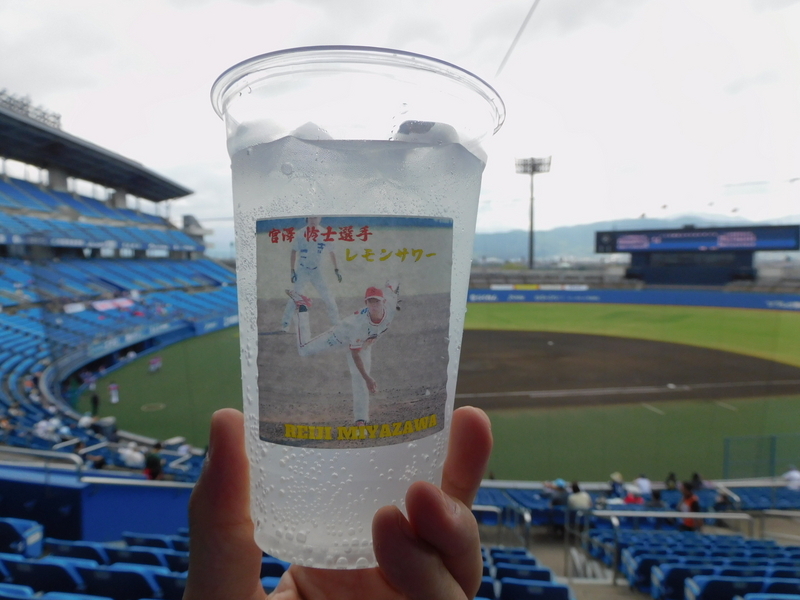ということで、5回を終えて4-1で火の国サラマンダーズがリード。グラウンド整備の合間に、熊本の焼酎ハイボールを買ってきました。