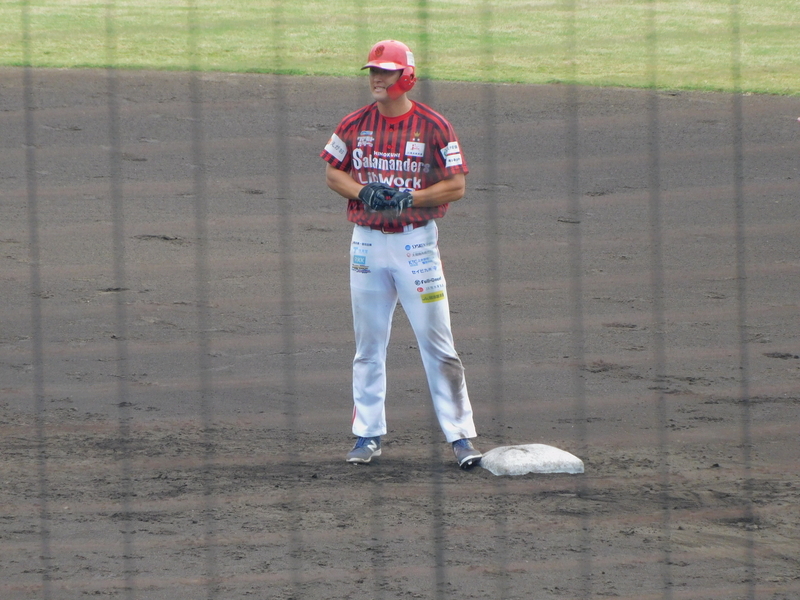 その後、盗塁と牽制悪送球が続いて2死3塁となったところで、9番のキャプテン高山が二遊間を破り、走者が悠々ホームイン。サラマンダーズが大きな1点を手にしました。