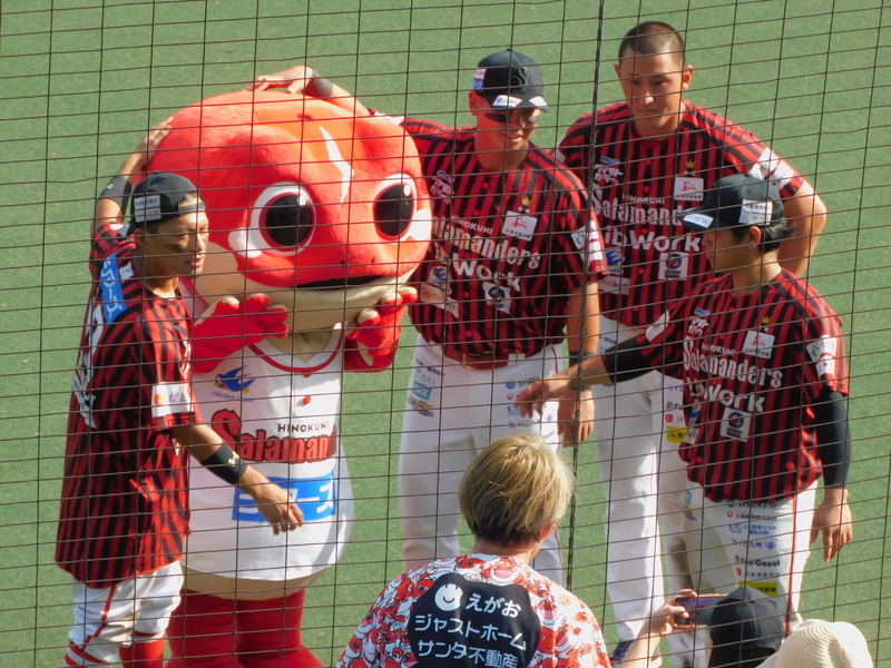 内野ではサラマンダーズのチアチームSallysがさら美と記念写真。チアはチアで、この日が最後の公式戦になります。