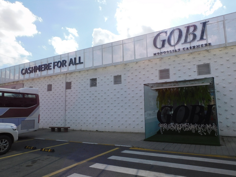 中心部への帰りに立ち寄った、モンゴルカシミア最大手ゴビ社の直営ショップ。日本の無償資金協力で建設されたゴビ工場としてご存知の方も多いことでしょう。
