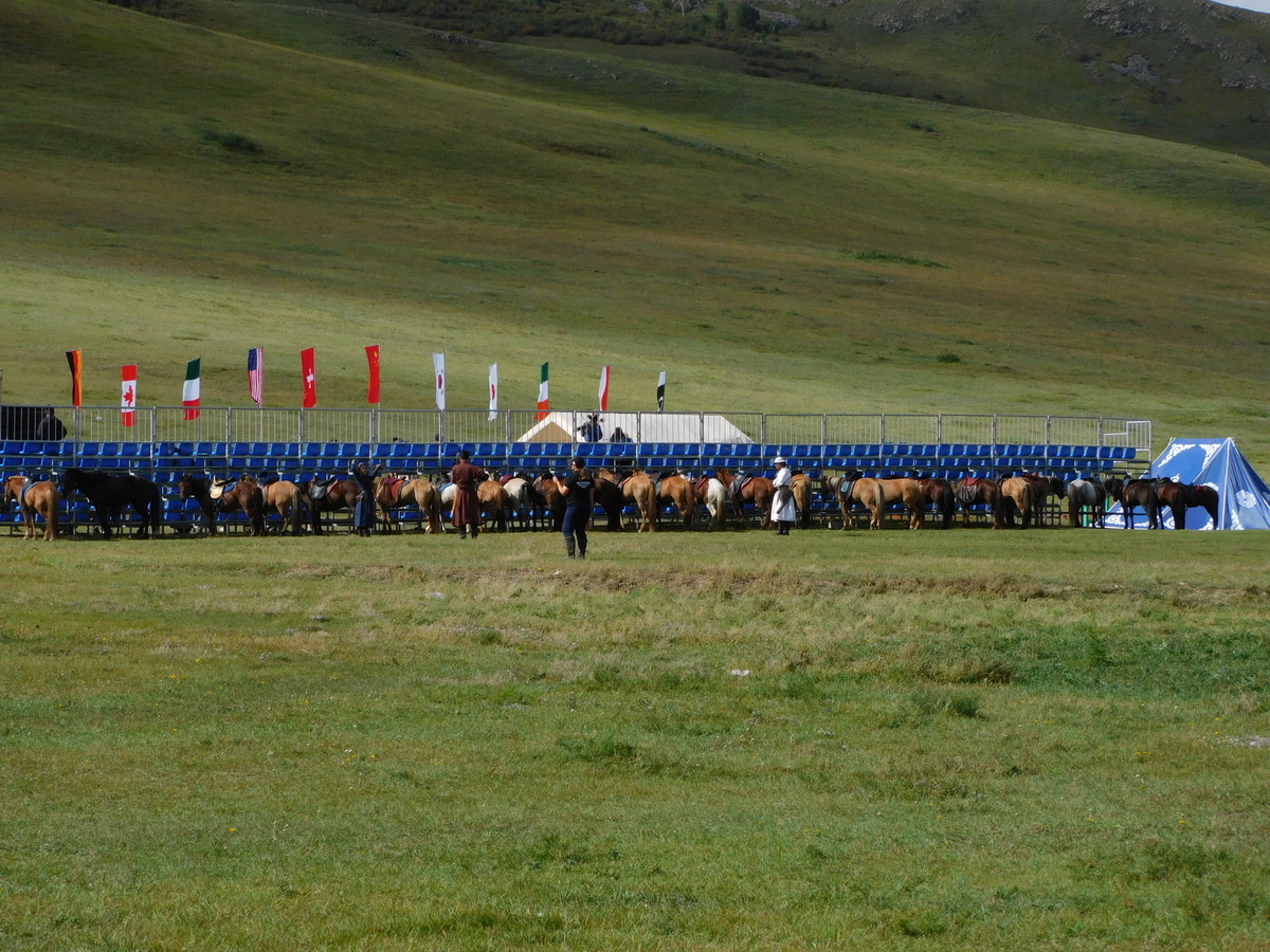 これから世界選手権も含めて1週間ほど、世界の名手がモンゴルに集まるんでしょうが、スタンドを見るとほとんどが空席。こちらは長閑に見ることができていいのですが、それでいいのかという気はします。モンゴルで騎射が見られるとなれば、外国人観光客には格好のアピールになると思うんですけどね。