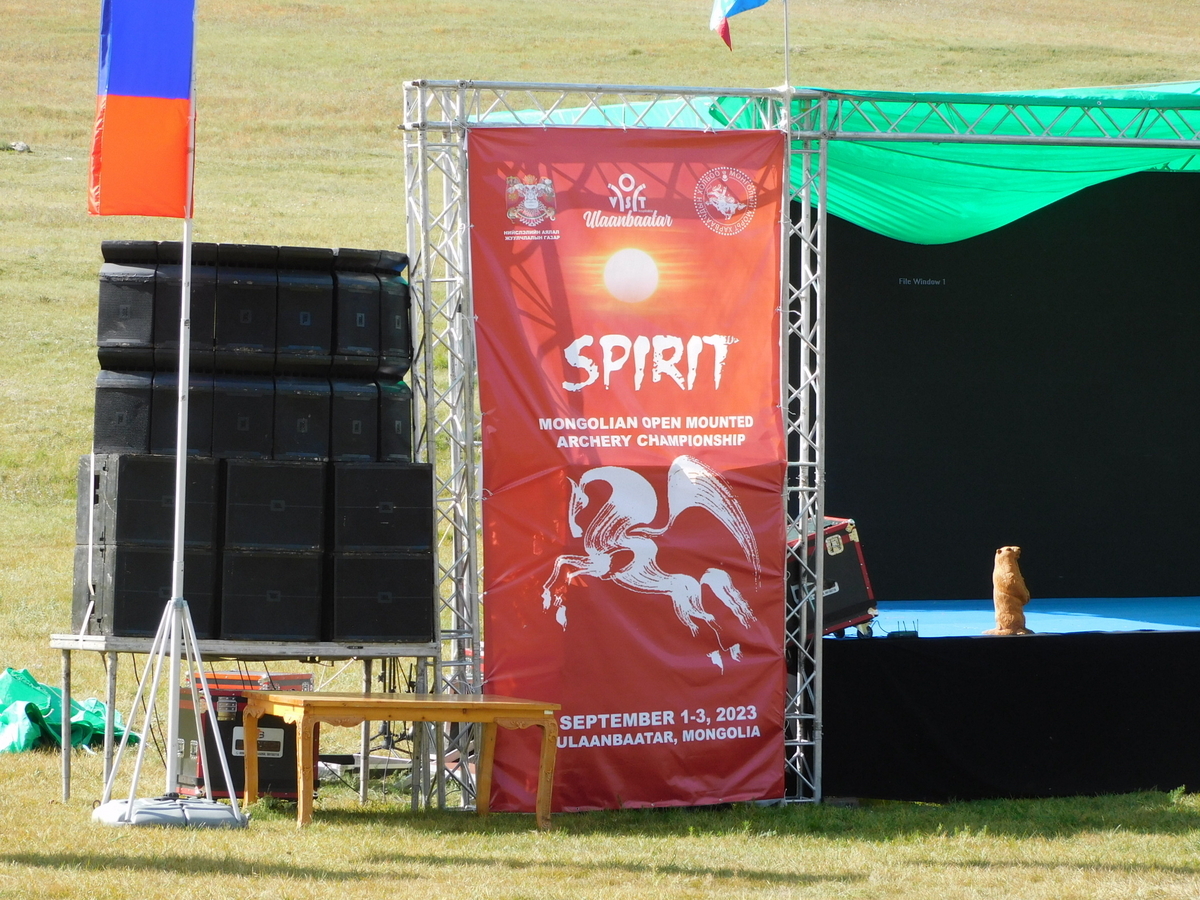 ステージの横の垂れ幕を見ると、騎射の大会が行われているとのこと。しかも今日が最終日です。