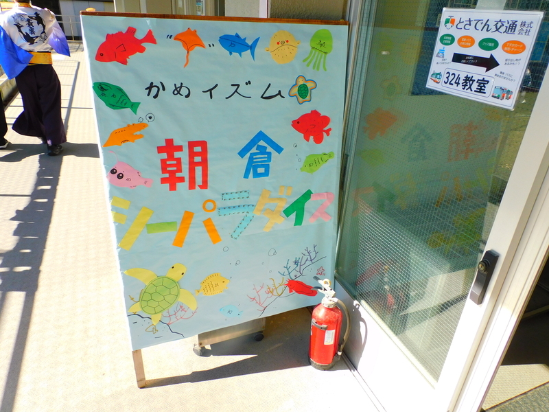 各教室での出店も恒例になっています。室内の写真公開は控えますが、今年もミニ水族館の展示がありました。