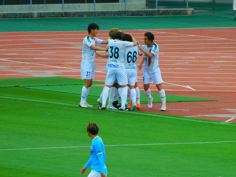 俄然意気上がる高知は4人目にDF37番深川が登場。左上に落ち着いて決め、ついに1ゴールリードします。